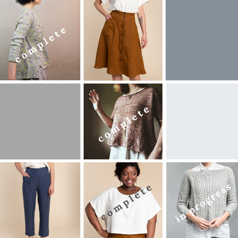 - Finish knitting the Ondawa sweater, and sew the Fiore Skirt and Pietra Pants by Closet Case Patterns for Make Nine